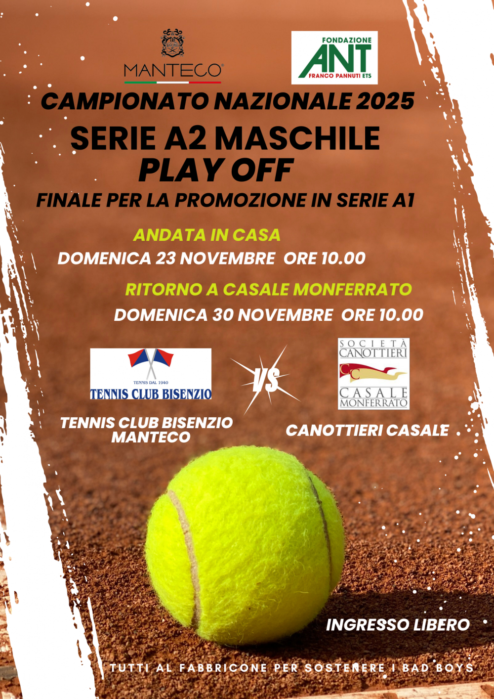 Domenica prossima 23 novembre, dalle ore 10, sui campi del Fabbricone, si giocheranno gli incontri (4 singoli e 2 doppi) della partita di andata della finale play off per decretare la squadra che sarà promossa in serie A1 nel 2026.
